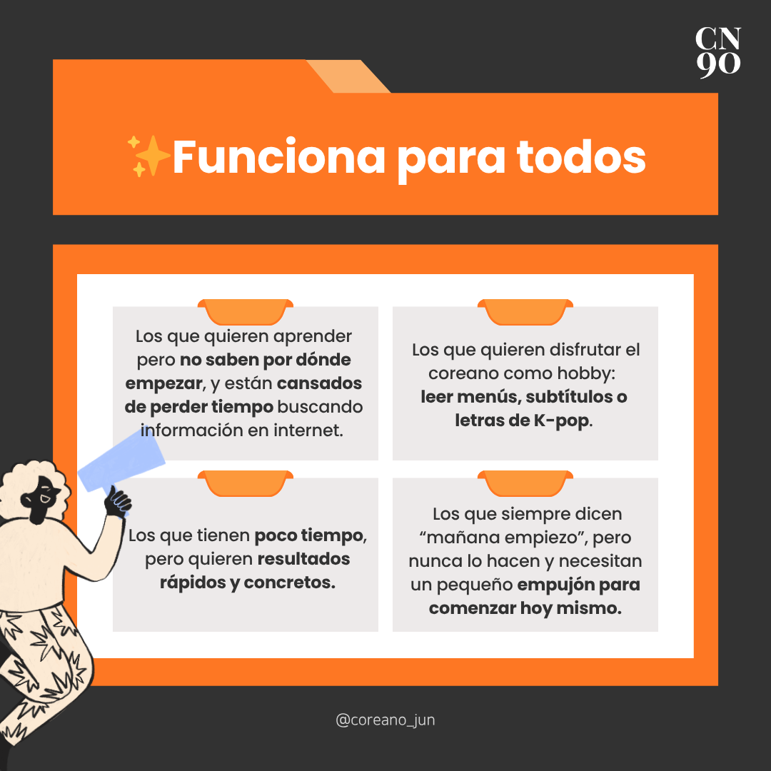 Este programa funciona igual si trabajas a turnos, estudias, eres ama de casa, ya estás jubilado o pensabas que aprender coreano era solo para jóvenes. Hemos comprobado resultados reales en personas de perfiles muy distintos